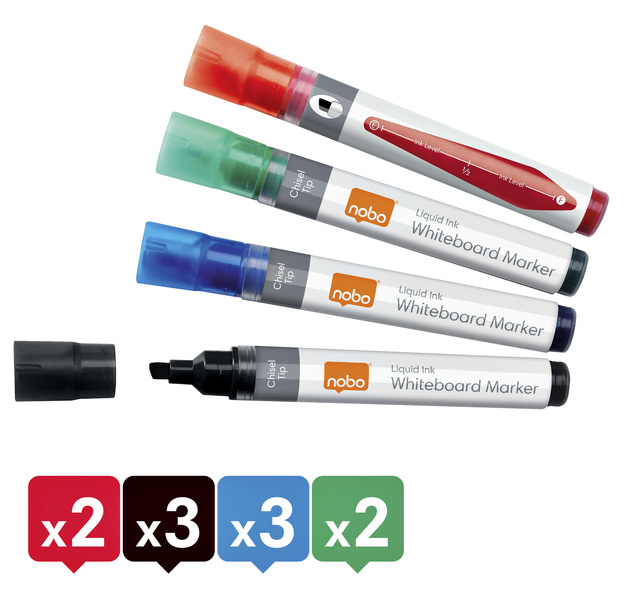 Marqueur tableau blanc Nobo Liquid Ink biseau 4mm assorti 10 pièces