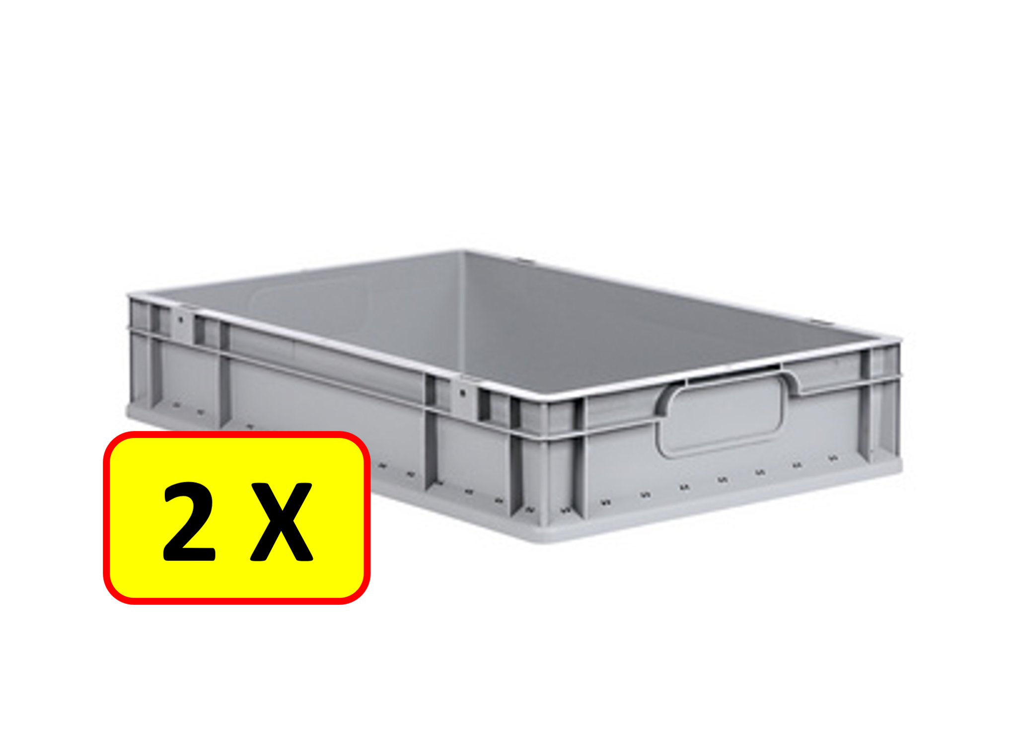 2 x Euronorm stapelbak H12 - 60x40x12 cm - grijs