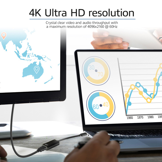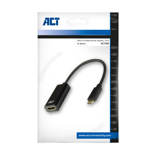 * Met de AC7305 USB-C naar HDMI Adapter sluit je jouw notebook met USB-C aan op een beeldscherm of beamer met HDMI-ingang. * De maximale ondersteunde resolutie is 4096 x 2160 (4K) @ 30Hz. * Deze resolutie is ideaal voor het tonen van video's, afbeeldingen, presentaties etc. * Let er wel op dat je notebook een USB-C poort met DP Alt Mode ondersteuning heeft. * Video en audio adapter van USB-C naar HDMI. * Maximale resolutie 4096 x 2160 (4K) @ 30Hz. * Input: USB-C male – output: HDMI female. * Plug and play: alleen een USB-C-poort met DisplayPort Alternate Mode (DP Alt Mode) is nodig.