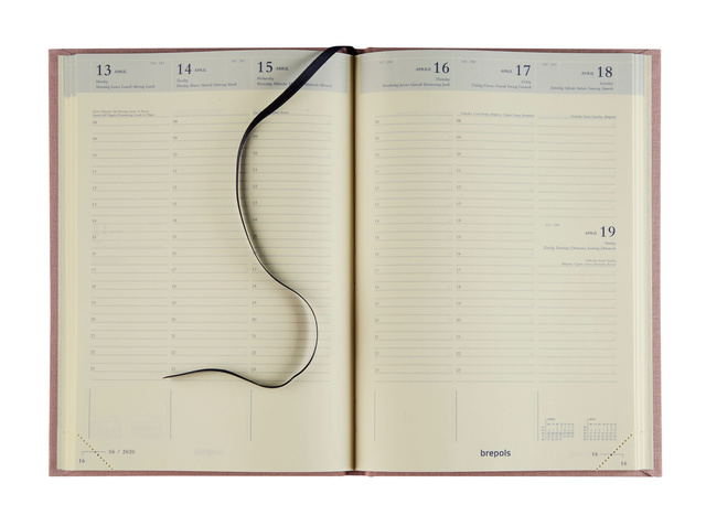 * Agendaformaat 14,8 x 21 cm. * Uurindeling 8.00 - 23.00 uur. * Hoekperforatie. * Leeslint. * Crèmekleurig 70 gr. papier. * Zestalig. * 16-maands calendarium augustus t/m december. * Maandkalender op elke pagina. * Extra ruimte voor notities en telefoontjes. * Meegebonden adressenlijst. * Garengebonden. * Gewatteerde kunstlederen omslag. * FSC-gecertificeerd.