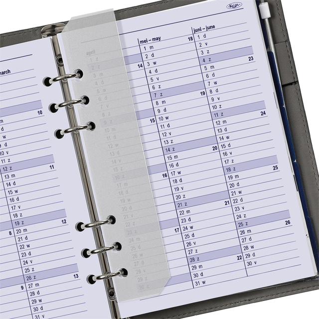 * A5 jaardoos 1 week per 2 pagina's. * Bij de jaardoos krijgt u het complete calendarum (no 6207-24), u krijgt extra 5 tabbladen, een adresset, paginascheider, een ritshoesje en een bewaardoos die u ook kunt gebruiken om uw agendavulling van vorig jaar te bewaren. * Houd uw A5 kalender georganiseerd met deze 2025 navulverpakking. * Het past perfect in uw agenda. * U krijgt 160 pagina's wit papier met blauwe opdruk, met één week op 2 pagina’s en tijdsindeling van 9:00 uur tot 18:00 uur. * Dit is een navulpakket voor een A5 formaat agenda organizer voor het jaar 2025. * U kunt al uw afspraken in haar bijhouden. * Houd uw agenda georganiseerd met deze navulling. * Met een week voor elke pagina heeft u maximale ruimte voor uw afspraken. * De afmetingen zijn: 145x210 mm papier, gatenafstand van 19 - 19 - 70 - 19 - 19mm. * Daarnaast bevat het een jaarplanner voor 2025 en 2025. * De taal is zowel in het Nederlands als in het Engels. * Dit navulpakket werkt met A5 organizers van vele populaire merken, waaronder Kalpa, Succes, en Filofax. * Houd uw agenda georganiseerd en op koers! 1 stuk