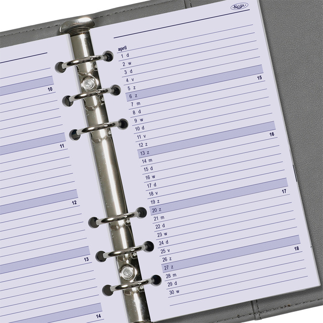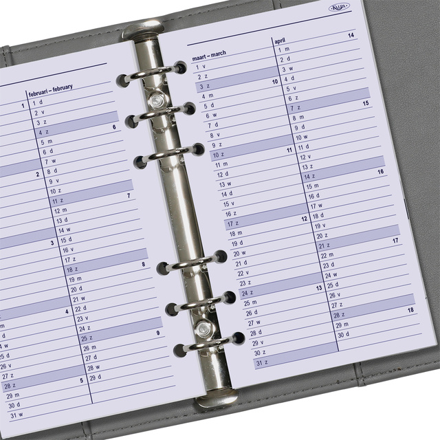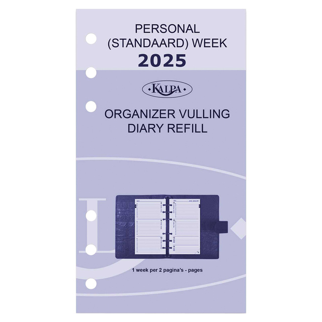 * Personal vulling 1 week op 2 pagina's : houd uw Personal agenda georganiseerd met deze navulverpakking. * Het past perfect in uw agenda. * U krijgt 160 pagina's wit papier met blauwe opdruk, met één week op 2 pagina's en tijdsindeling van 9:00 uur tot 18:00 uur. * U heeft maximale ruimte voor uw afspraken. * De afmetingen zijn: 95x170 mm papier, gatenafstand van 19 - 19 - 52 - 19 - 19 mm. * Daarnaast bevat het een jaarplanner voor 2025 en 2026. * De taal is zowel in het Nederlands als in het Engels. * Dit navulpakket werkt met Personal organizers van vele populaire merken, waaronder Kalpa, Succes, en Filofax. * Houd uw agenda georganiseerd en op koers!