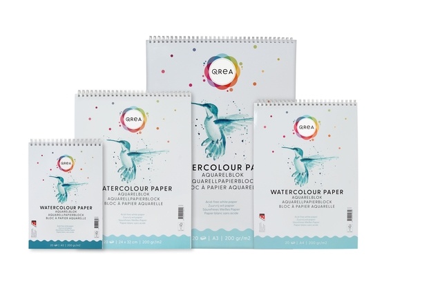 * Of je nu een beginner bent of een professionele kunstenaar, dit aquarelblok van Qrea is geschikt voor iedereen! * Ideaal papier voor de eerste stappen in het aquarelleren en andere natte technieken.* Dit aquarelblok heeft een dubbele spiraal. * Het bevat zuurvrij papier, dat niet vergeelt niet na verloop van tijd. * Het harde karton aan de onderkant zorgt voor optimaal gebruiksgemak. * Afmeting: A5 formaat. * Blok à 20 vellen 200 grams papier. * Diverse formaten beschikbaar. * Geproduceerd in Nederland.