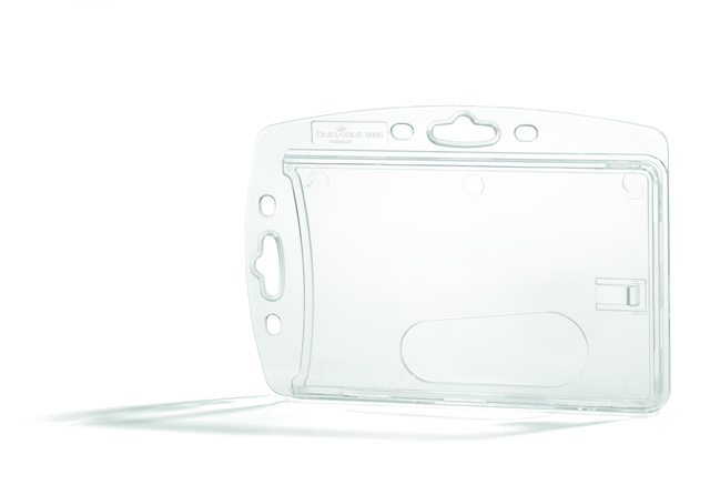 * Kaarthouder, gesloten uitvoering voor 1 identificatiepas. * Glashelder materiaal voor een optimale leesbaarheid en het scannen van barcodes. * Voorzien van een duimuitsparing om de kaart gemakkelijk uit de houder te schuiven. * Ook mogelijk om te combineren met afrolmechanisme, ketting of textielkoord. * Naar keuze te gebruiken in staand of liggend formaat. * Binnenafmetingen/kaartformaat: 87x54mm (BxH).