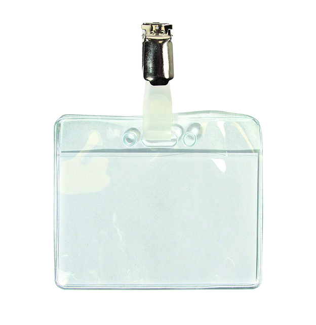* Transparante uitvoering. * Met verwisselbaar blanco insteekkaartje. * Met duimuitsparing op de rugzijde waardoor de insteekkaartjes eenvoudig te wisselen zijn. * Onder meer geschikt voor vergaderingen, recepties, conferenties en seminars. * Voorzien van een strip met bretelclip die in de voor geponste sleuf kan worden bevestigd.