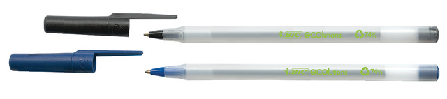 * Balpen gemaakt uit 74% gerecycleerd materiaal. * Dop en punt in de kleur van de inkt, transparante barrel. * Schrijfbreedte 0,32mm - kogelbreedte 1,0mm. * Bic balpennen voldoen aan de ISO12757-2 norm.