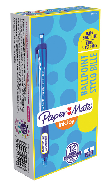 * InkJoy is een revolutionair inktsysteem dat snel en gelijkmatig gebruiksklaar is, dat slechts een minimale handdruk vereist en dat altijd scherpe, zuivere lijnen garandeert. * Met rubber beklede driehoekige greep voor comfort en controle. * Doorschijnende en gekleurde houder voor een frisse uitstraling. * Intrekbare punt voor optimaal gebruiksgemak. * Schrijfbreedte medium.