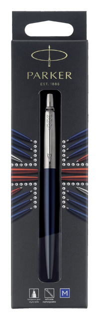 * De Parker Jotter serie is al ruim 60 jaar een begrip en deze balpen is daar zeker geen uitzondering op. * De Parker Jotter Royal blue CT medium balpen heeft een vakkundig vervaardigde rvs blauwe body, gecomplementeerd met een edelstalen pijlpuntclip. * De prachtige details van de Jotter pen zorgen ervoor dat de pen een verfijnd cadeau is voor iedereen die de kunst van het schrijven kan waarderen. * De balpen is uitgerust met een Quickflow-balpenvulling voor een optimale inktstroom en een soepele schrijfervaring. * Hij is voorzien van een medium punt, een blauwe schrijfkleur en geschikt voor de navullingen van Parker. * De pen wordt geleverd in een stevige blister. 1 blister x 1 stuk