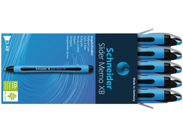 * Luxe balpen. * Slider MEMO XB. * Met ViscoGlide-Technology, voor een zijdezachte en intensieve schrijfervaring. * Voorzien van slijtvaste edelstalen punt XB. * Houder afgewerkt met rubber coating voor een zachte ergonomische grip. * Schneider is Emas gecertificeerd. * Deze Schneider schrijfwaren zijn ISO12757-2 gecertificeerd. * De metalen clip is graveerbaar. * Schrijfbreedte 0,6mm - kogelbreedte 1,4mm.