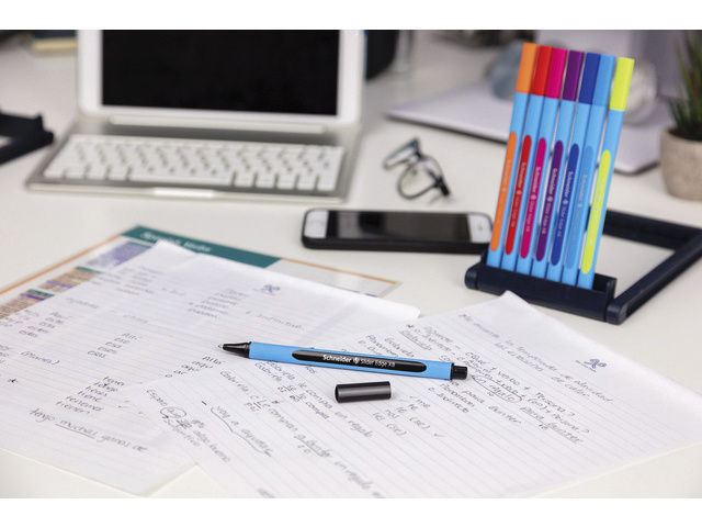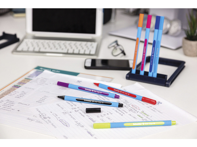 * Balpen met rubberen 3-kantige schacht voor ontspannen schrijven. * De dop kan omgedraaid worden. * De Slider Edge kan niet rollen op het buro en de slanke uitvoering past goed in een pennenlade of pennetui. * Vlekvrij, ook in combinatie met een tekstmarker. Uitvoering in Extra Breed (XB). * Standaard a 8 stuks assorti. * Schrijflengte ca 2.000 meter.