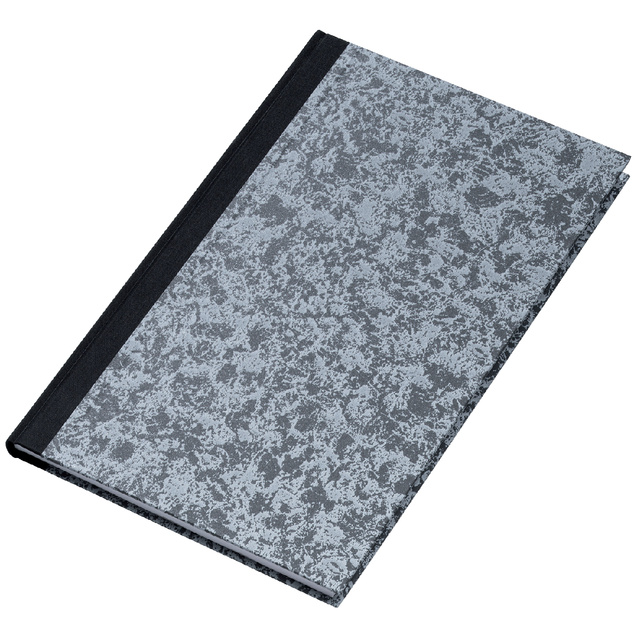 * Waterafstotend en eenvoudig schoon te houden. * Blauw gelinieerd schrijfpapier. * Genaaide, zwarte linnen rug. * Grijs gemarmerde kunststof voor- en achterkant. * 80 g/m² houtvrij papier.