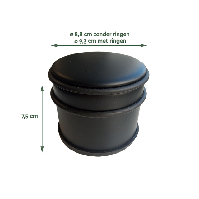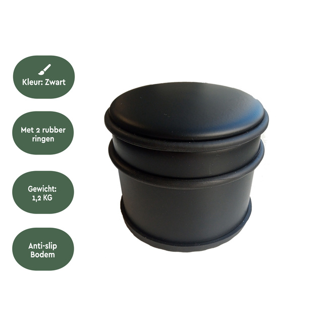 * Nooit meer dichtvallende of klapperende deuren. * Geen beschadigingen, butsen of krassen meer aan meubels, plinten, deurbeslag of muren. * Met deze robuuste deurstopper, of deurbuffer, van BRASQ ben je verzekerd van een kwalitatieve deurstopper die diverse type deuren (hout/staal) open of tegenhoudt. * Plaats de deurstopper direct voor of achter een deur, luik of raam en voorkom dichtwaaien of dichtslaan. * De deurstopper is voorzien van rubberen ringen aan de bovenkant die er voor zorgen dat er geen beschadigingen ontstaan aan deuren, muren of meubels. * Aan de onderzijde van de deurstopper zit een rubberen afwerking, wat zorg voor een praktische anti-slip functie. * Draag eenvoudig de boodschappen naar binnen door de deurstopper voor de deur te plaatsen en heb je handen vrij om pakketjes aan te nemen bij de voordeur. * Zet deuren door middel van de praktische deurstopper op een kiertje zodat het huis of ruimtes eenvoudig doorgelucht worden. * Houdt op kantoor en in de (thuis)werk omgeving de kantoorruimtes goed geventileerd, de doorloop naar het magazijn handig open of je winkeldeur uitnodigend open voor je klanten. * Met slechts een gewicht van 1,1 kg verplaats je de vloer deurstopper eenvoudig naar de gewenste plaats in huis of kantoor. * Zowel de BRASQ Deurstopper in RVS of zwart gekleurde uitvoering past perfect in het elk type interieur.