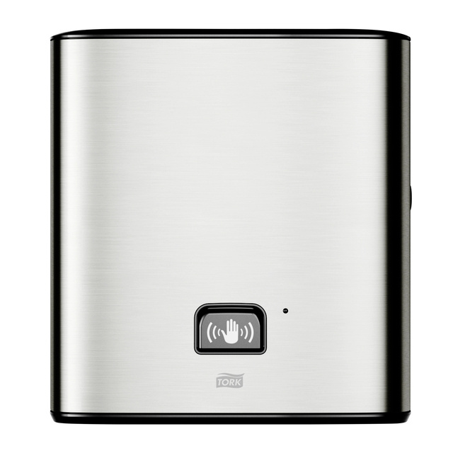 * De Tork Matic sensordispenser combineert efficiëntie met comfort en design. * Tork producten uit de  Image-design worden gekenmerkt door moderne en duidelijke lijnen. * De behuizing van geborsteld roestvrij staal heeft een anti-vingerdrukbescherming zodat deze er onberispelijk uitziet. * Door de sensor worden de papieren handoeken afzonderlijk, hygiënisch en zuinig uitgegeven zonder elkaar aan te raken. * De handdoeklengte is naar wens verstelbaar en de "Easy to use" certificering maakt eenvoudige bediening mogelijk. *  Deze onderhoudsarme roldispenser heeft een grote capaciteit en is afgestemd op toiletruimtes met een hoge bezoekersfrequentie.  *Door de LED niveau-indicator zie je snel en eenvoudig wanneer de dispenser weer gevuld moet worden. * Afmeting 451 x 236 x 372mm.