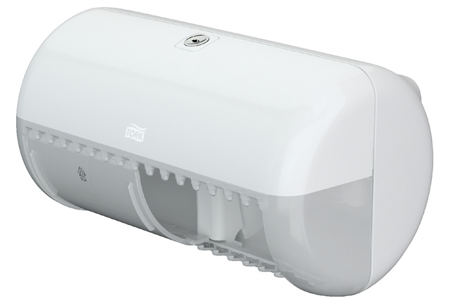 *De Tork toiletpapier dispenser T4 wit biedt toiletten met beperkte ruimte een compacte oplossing. * Deze dispenser is hiervoor speciaal ontworpen en zeer geschikt voor toileten met een laag bezoekersaantal. * Er is in de toiletpapierdispenser ruimte voor twee rollen. * Hierdoor hoeft het personeel minder bij te vullen en treffen de bezoekers minder snel een lege dispenser. *Hiermee garandeer je goede hygiëne en door het eenvoudige afscheursysteem bescherm je de handen. * Tork Elevation-dispensers hebben een functioneel, modern ontwerp dat een blijvende indruk maakt op uw bezoekers. * De hoogglanzende behuizing van hoogwaardig kunststof is beschikbaar in het wit of zwart. *Afmeting 167 x 293 x 166mm.