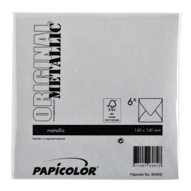 * Gekleurde enveloppen. * In verschillende kleuren beschikbaar. * Afmeting 140x140mm. * 100 grams papier. * Pak a 6 stuks. * In dezelfde kleuren is ook A4 papier verkrijgbaar. * Gewicht van 1 envelop ca. 4 gram.