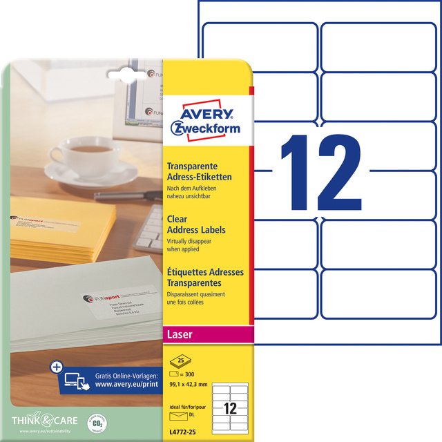 Etiket Avery Zweckform L4772-25 99.1x42.3 mm transparant mat 300stuks