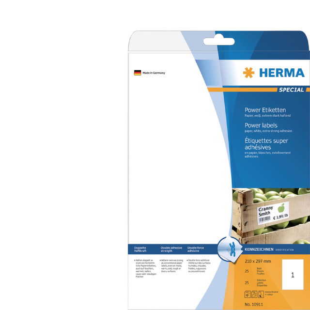 Etiket HERMA Power 10911 210x297mm wit 25stuks