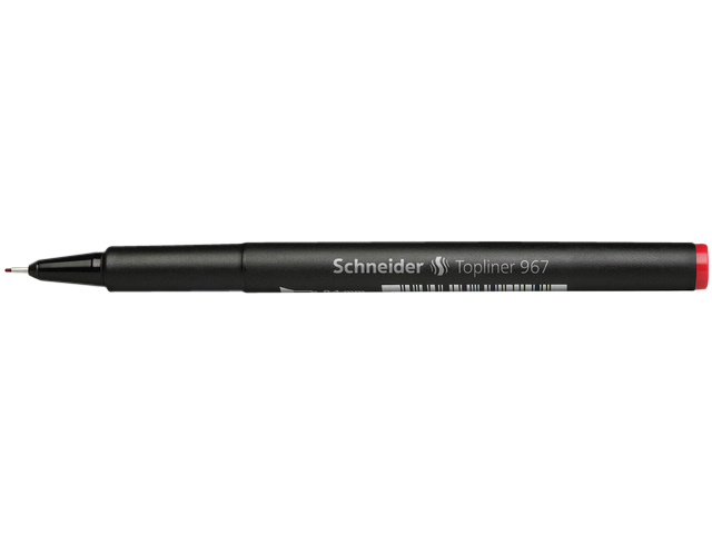 * Topliner 967 schrijft en tekent fijn en exact. * De puntvorm van edelstaal zorgt voor gelijkblijvende fijne lijnen. * Vertrouwde techniek in een nieuwe moderne stiftvorm. * Zwarte houder met matte metallic glans. * De schrijfkleur is herkenbaar aan dop en stift. * Schneider is Emas gecertificeerd. * Schrijfbreedte 0,4mm.