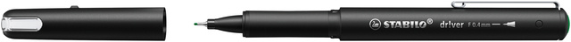 * De STABILO dr!ver fineliner is de perfecte pen voor elke schrijfgelegenheid. * Op kantoor, bij de studie of thuis - deze fineliner is een tijdloze en elegante pen. * De punt met een schrijfbreedte van 0.4m veert mee met de schrijfdruk voor een optimale schrijfervaring. * De pen kan zonder problemen mee in je zak of tas zonder vlekken of kwijtraken, dankzij de dop en metalen clip. * Schrijfkleur groen.
