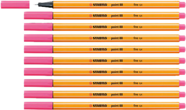 De Point 88: de ideale fineliner voor schrijven, tekenen, schetsen en onderstrepen. Dankzij het brede scala aan prachtige kleuren, waaronder pastel- en neonkleuren, heb je een complete creatieve selectie binnen handbereik. De met metaal omhulde punt en de uitstekende bescherming tegen uitdrogen zorgen voor een hoge kwaliteit en maken van de STABILO point 88 een duurzame fineliner waarop je elke dag kunt vertrouwen. Dankzij de punt die met metaal is omvat, is de fineliner ideaal om te gebruiken in combinatie met een liniaal of sjabloon, er ontstaan geen vervelende vegen meer. Perfect voor creatieve ideeën, of thuis, op school en op het werk. De Point 88 is extra duurzaam, vanaf heden is de dop en penbehuizing gemaakt van 96% bio-gebaseerd kunststof volgens massabalans benadering.