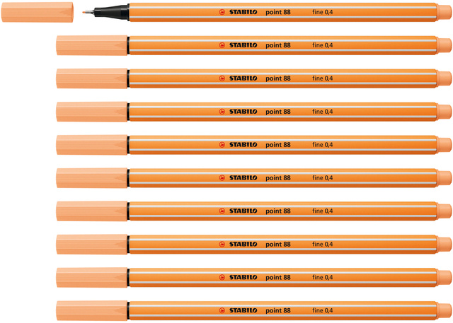 * Verkrijgbaar in 65 kleuren * De fineliner STABILO point 88 in de kleur: pastel oranje (25)