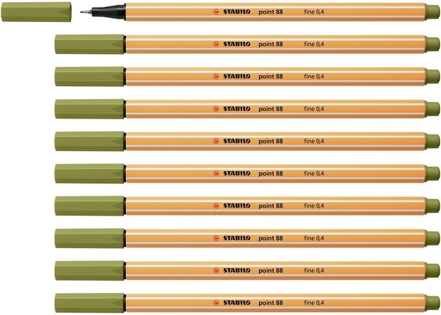 * Verkrijgbaar in 65 kleuren * De fineliner STABILO point 88 in de kleur: moddergroen (37)