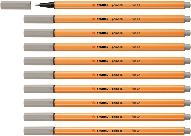 * Verkrijgbaar in 65 kleuren * De fineliner STABILO point 88 in de kleur: warm grijs (93)