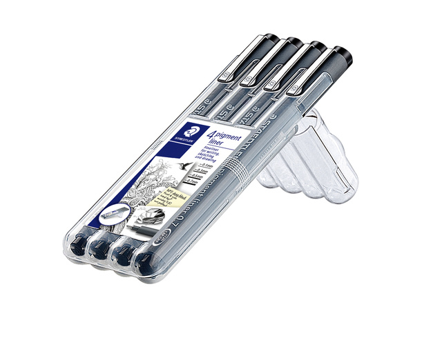 Fineliner Staedtler Pigment 308 zwart set 4 stuks