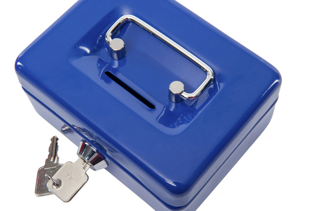 * Geldkistje van gelakt staal. * Deksel met verzonken verchroomde handgreep en muntengleuf. * Voorzien van een kunststof muntenbakje en een veiligheidscilinderslot met 2 sleutels. * Ideaal als spaar- of koffiekas. * 2 jaar garantie. * Afmetingen 125x95x60mm.