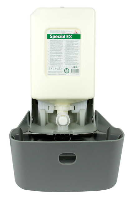 * De EX4000 dispenser is ontworpen door deskundigen en afgestemd op de behoeften van de middelzwaar - zware industrie. Deze dispenser is geschikt voor de Dreumex handreinigers Special en Plus 4L. De EX4000 en handreinigers zijn optimaal op elkaar afgestemd. * De EX4000 is een zeer robuuste dispenser met een gegarandeerd lange levensduur. Een uniek aspect aan dit systeem is dat de pomp geen onderdeel uitmaakt van de dispenser, maar bevestigd is aan het patroon. Bij elk nieuw patroon wordt een nieuwe pomp gebruikt wat leidt tot een feilloos gebruik en optimale hygiëne. * De patronen voor de EX4000 dispenser bevatten 4 liter inhoud dat goed is voor ongeveer 800 handwassingen. Bij elk nieuw patroon wordt een nieuwe pomp gebruikt wat leidt tot een feilloos gebruik en optimale hygiëne. * De krachtige anti-lek pomp zorgt ervoor dat het patroon volledig geleegd wordt en er geen restproduct achterblijft. De dispenser is economisch in gebruik door de perfect afgestemde hoeveelheid van 5 gram voor een effectieve handwassing.