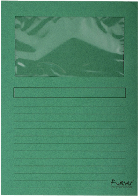 * Forever L-map van 120gr gerecycled papier. * Blauwe Engel gecertificeerd. * Voorzijde voorzien van een transparant venster 180x100mm. * De map is beschrijfbaar. * Voor A4-formaat. * Afmetingen 220x310mm. * Pak à 100 stuks.