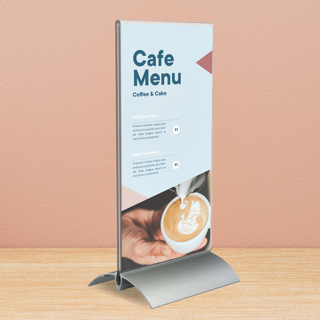 * Kaarthouder voor een glasheldere presentatie van menu- of prijskaarten. * Gemaakt van hoogwaardig glashelder acrylaat. * Voor tweezijdige presentatie. * Voorzien van een hoogwaardig aluminiumvoet. * T-standaard. 1 stuk
