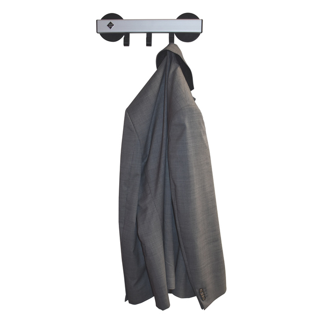 * Magnetische wandkapstok. * Sterk magnetisch ophangsysteem met 3 haken die in een rails onder de balk hangen. * Model VB 184088. * Kleur grijs, zwart. * Afmetingen 330x33x105mm.