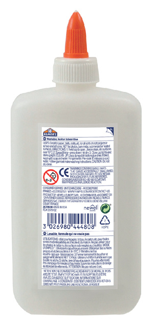 * Wil je slijm maken? * Begin dan met Elmer's uitwasbare PVA-lijm. * De soepele, witte lijmformule zorgt voor een perfecte slijmbasis die kan worden aangepast met kleuren. * Volg gewoon Elmer's recepten voor lijmslijm. Elmer's knutsellijm is speciaal gemaakt voor kinderen met een uitwasbare formule die niet uitloopt. * Dit is een degelijke keuze voor school, kunst en doe-het-zelfprojecten. * Ook geschikt voor het plakken van voorwerpen op papier en textiel en voor allerlei andere knutselideeën. * Gebruik Elmer's vloeibare lijm om kleurrijk origineel slijm te maken en voor een groot aantal projecten. * Niet voor kinderen jonger dan 3 jaar. 1 flacon à 225ml