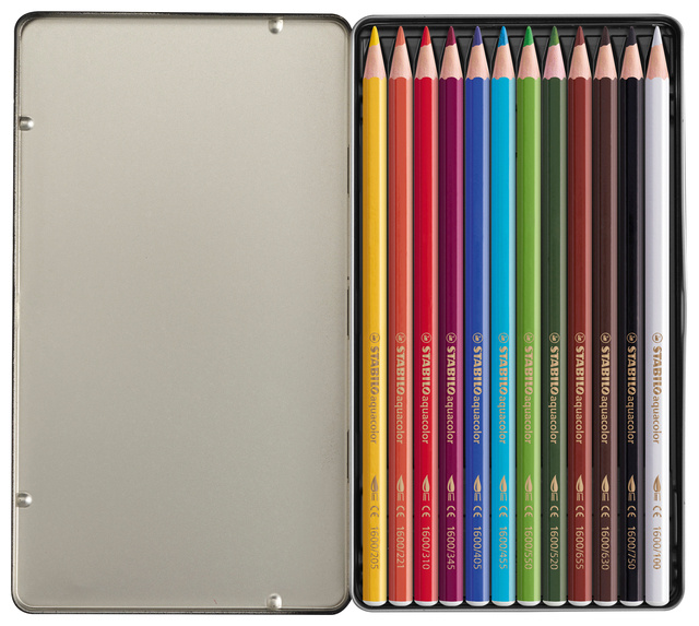 Kleurpotloden STABILO 1612 aquacolor assorti blik à 12 stuks