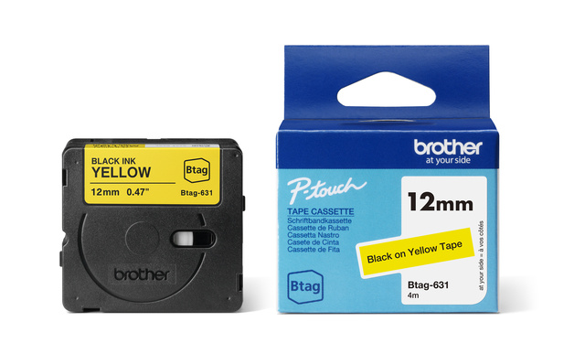 * Originele Brother Btag-631 tapecassette met niet-gelamineerde, gele labeltape en zwarte tekst voor het maken van labels van 12 mm breedte. * Deze tape is ideaal voor gebruik in huis, zoals het labelen van voorwerpen in de keuken, het thuiskantoor of het ordenen van opslagdozen in de slaapkamer en op zolder. Daarnaast zijn de labels zeer geschikt voor het personaliseren van spullen die snel kwijtraken, zoals schoolmaterialen en studieboeken van kinderen. * Deze Btag-tape is niet-gelamineerd maar wel bestand tegen diverse situaties en omstandigheden die dagelijks in huis voorkomen. De labels zijn geschikt voor gebruik in de magnetron, vriezer, vaatwasser en zijn bestand tegen huishoudelijke schoonmaakmiddelen en water, waardoor ze langdurig intact en goed leesbaar blijven. * Tapecassette met 4 meter labeltape. Geschikt voor de Brother P-touch Btag labelprinters.