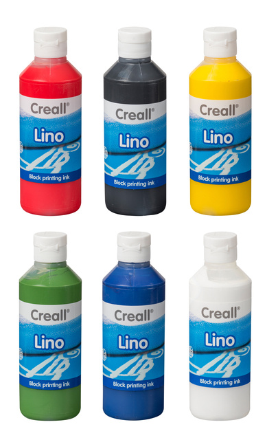 * Veelzijdige verf voor linoleum op waterbasis. * Gebruiksklaar. * Goede dekkracht. * Kleurkrachtig. * Voor printen met o.a. linoleum of hout op verschillende ondergronden. * Lang verwerkbaar door lange droogtijd (± 15-20 min.). * Kleuren onderling mengbaar.