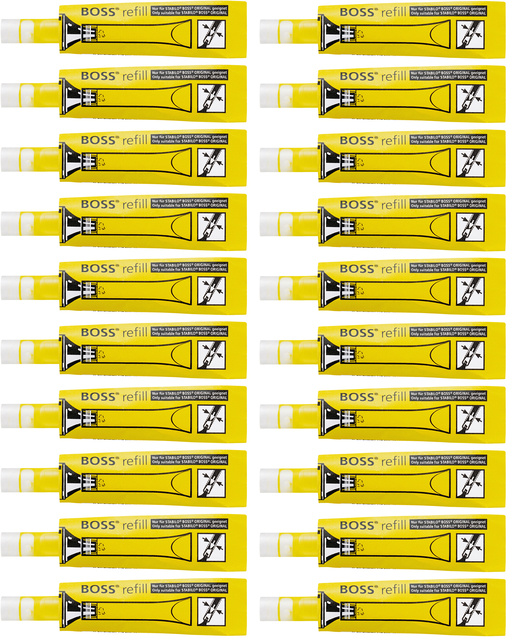 * De STABILO BOSS ORIGINAL navulling is en navulsysteem voor STABILO BOSS ORIGINAL, STABILO BOSS SPLASH en de STABILO GREEN BOSS markeerstiften. * De handige navullingen zet je makkelijk op de punt en zo vul je de markeerstift na. * Iedere navulling is los verpakt.