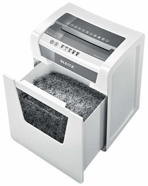 * Een stijlvolle en gebruiksvriendelijk papierversnipperaar van Leitz. * Ideaal voor gebruik op een klein kantoor. * Vernietigt tot 10vel tegelijkertijd in snippers van 2x15mm. * Veiligheidsniveau P5. * Stillere werking voor een rustige werkomgeving (bij regelmatig gebruik van olievellen). * Anti-vastloop technologie, papiervernietiger stopt automatisch en draait terug als er teveel papier is geplaatst. * Continue werkduur van 2 uur. * Vernietigingssnelheid van 1,8 meter per minuut. * Tiptoetsbediening - simpel en intuïtief voor eenvoudige bediening. * Eenvoudig te legen opvangbak van 23 liter. * Vernietigt ook nietjes en paperclips. * Afmetingen 465x370x279mm.