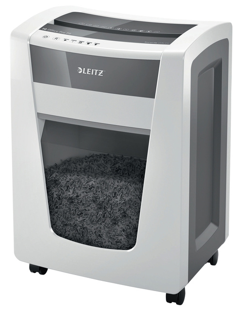 * Een stijlvolle papierversnipperaar van Leitz voor gebruik op kantoor. * Vernietigt tot 15vel tegelijkertijd in microsnippers van 2x15mm. * Veiligheidsniveau P5. * Stillere werking voor een rustige werkomgeving (bij regelmatig gebruik van olievellen). * Anti-vastloop technologie, papiervernietiger stopt automatisch en draait terug als er teveel papier is geplaatst. * Continue werkduur van 4 uur. * Vernietigingssnelheid van 1,8 meter per minuut. * Tiptoetsbediening - simpel en intuïtief voor eenvoudige bediening. * Eenvoudig te legen opvangbak van 30 liter. * Gemakkelijk te verplaatsen dankzij vier wielen van hoge kwaliteit. * Afmetingen 589x406x320mm.