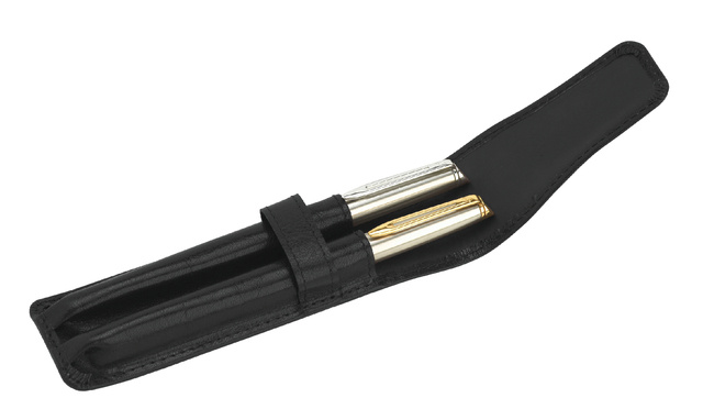 * Lederen pennenetui. * Leverbaar in zwart en bruin.
