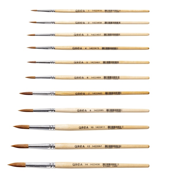 Ontdek de veelzijdigheid van schilderen met deze penseelset van Qrea, bestaande uit vijf hoogwaardige penselen met verschillende breedtes. De ronde, puntige vorm en het bruine synthetische haar bieden optimale controle, hoge vormvastheid en elasticiteit – perfect voor zowel detailwerk als bredere penseelstreken. De robuuste, natuurlijk gelakte houten stelen liggen prettig in de hand, en de stevige aluminium bussen zorgen voor een betrouwbare bevestiging van de haren. Of je nu werkt met aquarel-, plakkaat-, olie- of acrylverf, deze penselen leveren keer op keer verbluffende resultaten. Geproduceerd in Duitsland en ideaal voor elke creatieve toepassing.