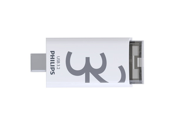 * De Philips Click USB-C flashdrive is geschikt voor gebruik met een breed scala aan apparaten, waaronder pc's, laptops, tablets en smartphones met USB-C-poort. * Dankzij USB 3.2 Gen 1-prestaties kun je gegevens ultrasnel overzetten, waardoor je productiever werkt en tijd bespaart bij het opslaan en openen van bestanden. * Met leessnelheden tot 120MB/s bespaar je kostbare tijd en heb je direct toegang tot je bestanden. * Het innovatieve klik-systeem beschermt de USB-C-connector en zorgt voor extra duurzaamheid, zodat je flashdrive langer meegaat. * Met zijn compacte formaat is de Philips Click USB-C flashdrive eenvoudig mee te nemen. * Of je nu op reis bent of onderweg naar je werk, je hebt altijd je belangrijke gegevens binnen handbereik. Kies voor de perfecte combinatie van snelheid, duurzaamheid en draagbaarheid. * Oplslagcapaciteit: 32GB. * USB-klasse: USB 3.2 Gen 1. * Connector: USB-C. * Max. leessnelheid: 120MB/s. * Max. schrijfsnelheid: 50MB/s. * Afmetingen: 2.0 x 5.9 x 0.9cm. * Gewicht: 8.7g. * Systeemeisen: Windows 7 en hoger; Mac OS 9.0 en hoger; Linux 2.4.0 en hoger; Android 4.0 en hoger; iOS 9.0 en hoger.