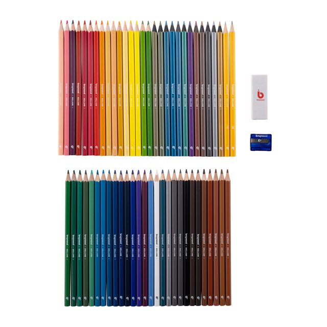 * 60 kleurproducten die jonge kunstenaars uren tekenplezier bezorgen! * Deze complete set bevat 44 kleurpotloden, 12 metallic kleurpotloden, 2 grafietpotloden, een gum en een puntenslijper. * Alles voor de mooiste tekeningen! * Al sinds 1948 worden al onze kleurpotloden met zorg vervaardigd en voldoen ze aan de hoogste kwaliteitseisen. * Veel kleurplezier!