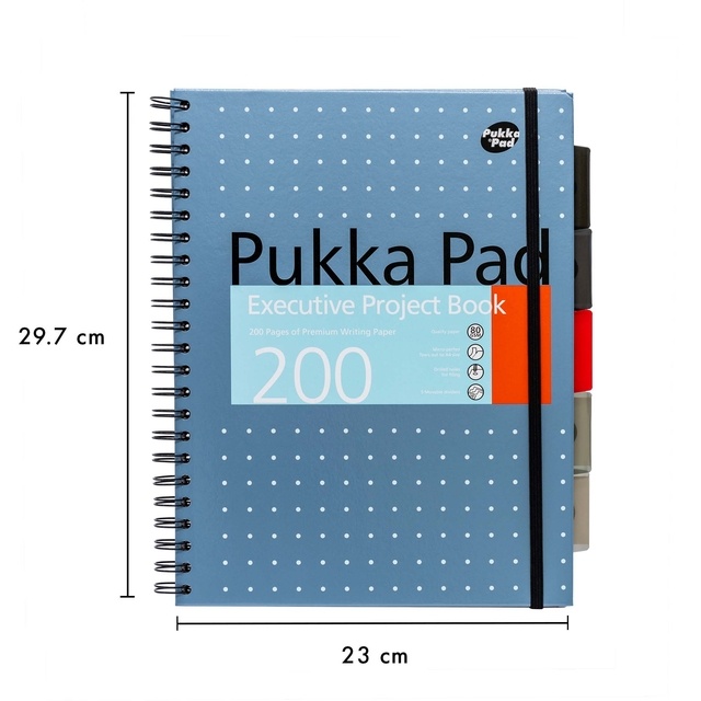 * De Pukka Pad Metallic serie is een essentiële collectie voor studenten, werkende professionals en bedrijven. Maak kennis met ons A4 Metallic projectboek, onderdeel van onze Metallic serie notitieboeken, in-house ontworpen en wereldwijd geliefd met onze kenmerkende geraffineerde metallic omslag. Het hoogwaardige projectboek is essentieel voor studenten en werkende professionals. Elk projectboek bevat 5 kleurgecodeerde, herpositioneerbare verdelers met opbergvakken. Deze zijn perfect voor het opsplitsen van onderwerpen, werkaantekeningen en projecten. Het projectboek heeft een harde kaft, zodat je aantekeningen beschermd en veilig zijn. Het A4 notitieboek is 230mm x 297mm groot en ideaal voor het maken van dagelijkse aantekeningen. Het projectboek bevat 200 pagina's van hoogwaardig 8mm gelinieerd, 80gr papier dat FSC-gecertificeerd is en bevat een wereldkaart op de binnenpagina van de voorkant om internationale contacten aan te wijzen. Er is ook een belangrijke informatiepagina aan de achterkant van het projectboek met een sectie voor dingen om te onthouden en een plek om je belangrijke contacten achter te laten. Verkrijgbaar in 3 kleuren paars, zilver en blauw. Deze kleuren worden in willekeur uitgeleverd.