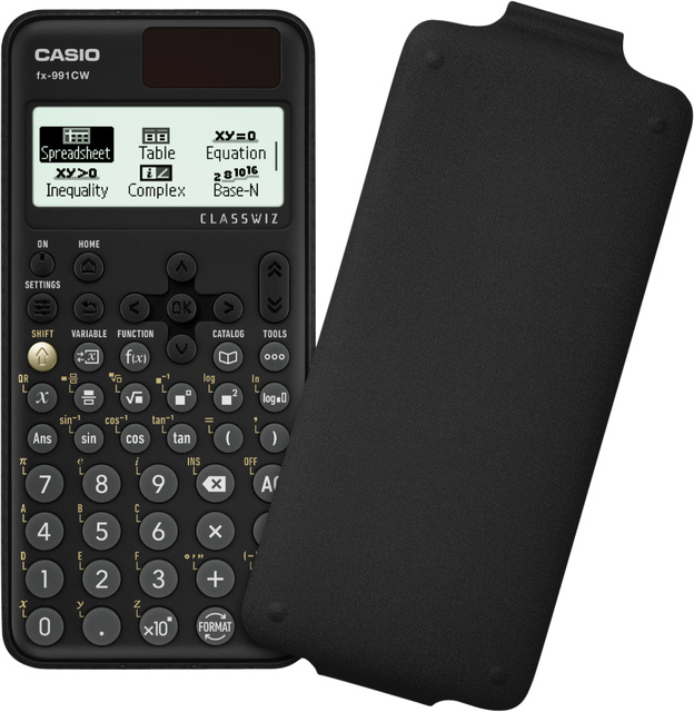 * De rekenmachine fx-991CW is met ruim 540 functies één van de krachtigste modellen technisch-wetenschappelijke rekenmachines. * De innovatieve bediening en menuondersteunende navigatie vereenvoudigt het gebruik voor leerlingen. * Wiskundige uitdrukkingen zoals wortels, breuken en logaritmen worden in natuurlijke spelling weergegeven. * Met de QR-code-functie kunnen resultaten en functies van de rekenmachine met de smartphone of tablet worden gevisualiseerd. Grafieken, diagrammen en tabellen kunnen zo online worden weergegeven in de CASIO webservice. * Tijdbesparende automatische aanmaak en geavanceerde bewerking van functiewaardetabellen. * Uitgebreide berekening van verdelingsfuncties (normaal, binomiaal, Poisson). * Wiskundebox: Willekeurige experimenten met munten en dobbelstenen met weergave van de relatieve frequenties van de sommen. * Dubbele voeding: zonne-energie en batterij (1x LR44). * Wordt geleverd inclusief hard hoesje. * Afmetingen 10,7x77x162mm. * Gewicht 95 gram.