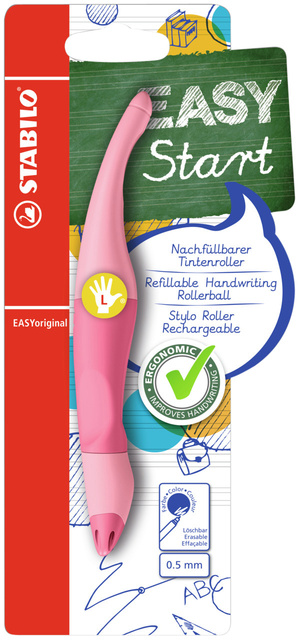 Rollerpen STABILO Easyoriginal linkshandig medium pastel poederroze blister à 1 stuk