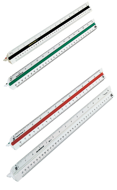 * Driekantige precisie-schaalstok met 6 schalen. * Wit perspex. * Praktische grote schaalaanduiding. * Stevig beschermetui. * Lengte 30cm.
