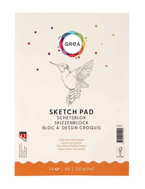 Schetsblok Qrea A5 24 vel 120gr gelijmd