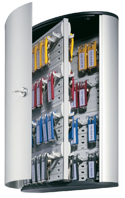 * Afsluitbaar sleutelkastje van aluminium. * Voor Key Clip sleutelhangers (zie onder). * Elk kastje wordt geleverd inclusief 6 Key Clip sleutelhangers, montage-instructies en montage-set. * Leverbaar in verschillende maten en capaciteiten. * Aan de binnenzijde van de deur is er ruimte voorzien voor een bedrukbaar indexblad. * Professioneel te bedrukken met gratis software op www.durable.nl. * Slot met twee sleutels. * Verkrijgbaar in vijf formaten, voor 18 tot 72 sleutels.